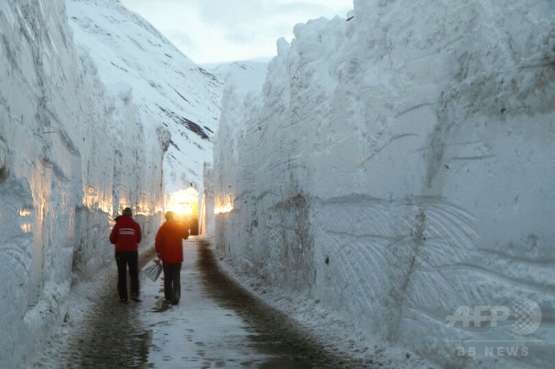 6メートルの雪の壁迫る細道、豪雪の仏アルプス