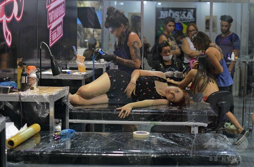 【1月13日 AFP】ブラジル・リオデジャネイロ(Rio de Janeiro)で12日、タトゥーとピアスの祭典「タトゥーウィーク・リオ(Tattoo Week Rio)2018」が開幕した。会場ではタトゥーを入れてもらう多くの愛好家らが見られた。(c)AFP