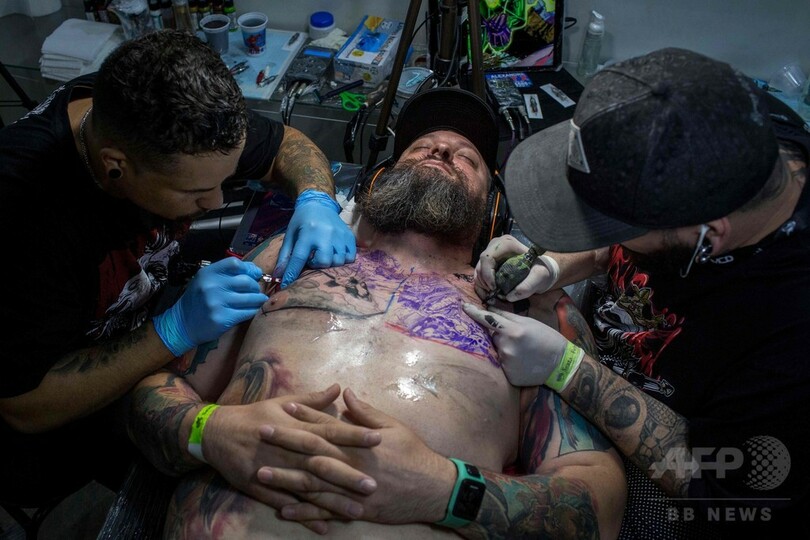【1月13日 AFP】ブラジル・リオデジャネイロ(Rio de Janeiro)で12日、タトゥーとピアスの祭典「タトゥーウィーク・リオ(Tattoo Week Rio)2018」が開幕した。会場ではタトゥーを入れてもらう多くの愛好家らが見られた。(c)AFP