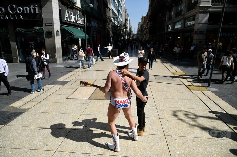 NY名物「裸のカウボーイ」、メキシコに出没 トランプ氏への愛歌う