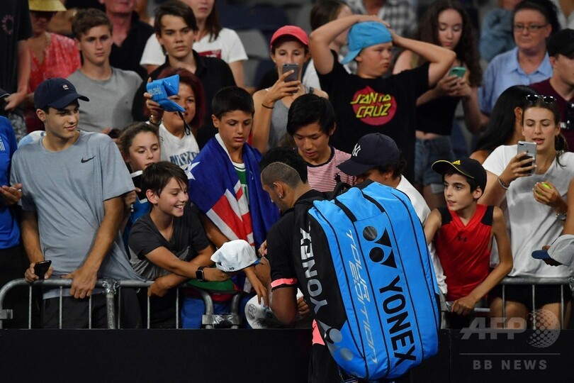 コート上では気性が荒いことで知られるキリオスだが、今回の一件には冷静に対応しており、「観客席にいた男はクレイジーだった。正直言って、何が起こっているのか分からなかった」とコメント。ユーチューバーによるいたずらだったと聞かされると「あっぱれだね。ちょっとした自慢になるじゃないか。やらせておけよ」と続けた。(c)AFP