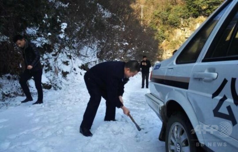 李さん宅に急ぐため、警察官は近くに住む村民からおのを借り、路上の氷を少しずつ砕きはじめた。知らせを聞いた村の幹部と近くにいた村民たちも駆けつけて手伝い、約2時間かけようやく道が通れる状態になった。警察は急いで李さんのもとへ駆けつけ、無事に病院に搬送した。(c)CNS/JCM/AFPBB News