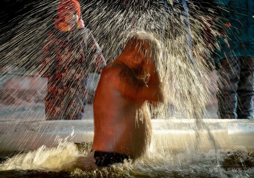 ロシア正教の信徒たちは毎年この日、イエス・キリスト(Jesus Christ)がヨルダン川(River Jordan)で聖ヨハネ(John the Baptist)から洗礼を受けたことを祝福し、氷のように冷たい水に漬かることが習わしとなっている。今年はシベリア(Siberia)地方の一部で氷点下68度を記録するなど、ロシア各地で厳しい寒さとなり、当局が祭りを中止した地域もあった。
