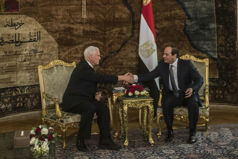 中東歴訪のペンス米副大統領、エジプトでシシ大統領と会談