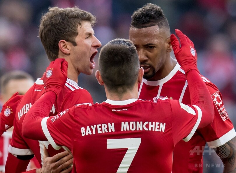 バイエルンはこの勝利で2位バイヤー・レバークーゼン(Bayer Leverkusen)との勝ち点差16を守った。一方で2位以下は大混戦で、レバークーゼンと7位フランクフルト(Eintracht Frankfurt)の勝ち点差はわずか1となっている(c)AFP
