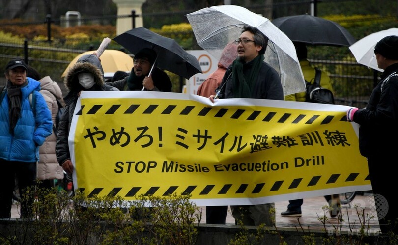 ミサイル飛来を想定、都内で戦後初の避難訓練 近くで抗議集会も