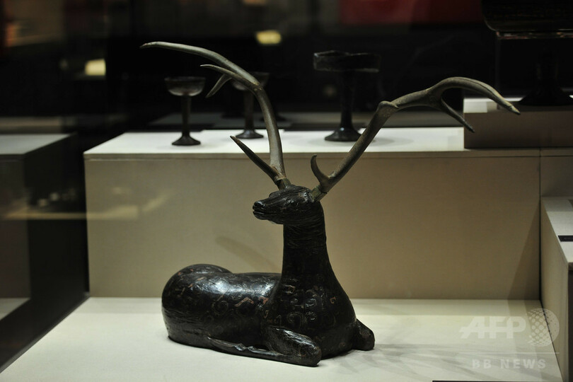 共同開催する湖北省博物館(Hubei Provincial Museum)収蔵の九連墩墓から出土した漆器や兵器、祭祀などの正式な場で使用されていたとみられる「青銅礼器」など115点を厳選して展示。楚国高官の優雅な暮らしや芸術を、当時のまま伝えている。3月11日まで。(c)CNS/JCM/AFPBB News