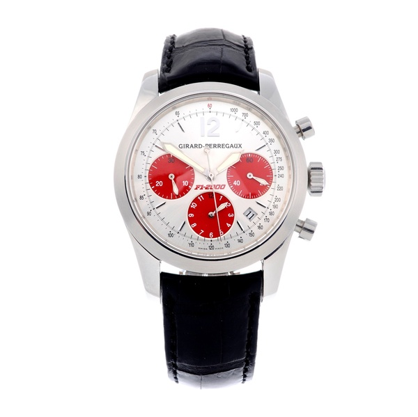 ロットNo.92で登場する「ジラール・ペルゴ」のクロノグラフF1-2000限定モデル、レファレンスNo.4956、2000個限定のシリアルNo.257、ステンレスケース(c)Fellows & Sons