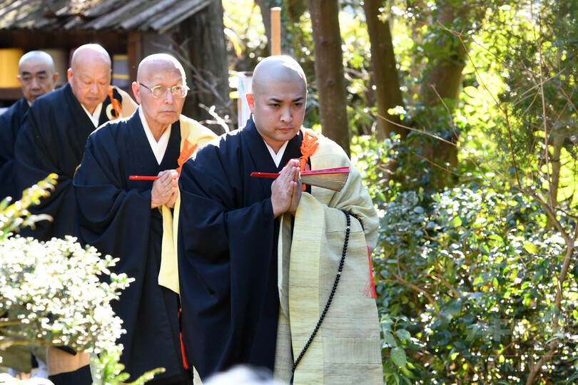 文殊祭では、600巻におよぶ経典をアコーディオンのように広げてめくり、一部を読むことで全体を読んだことに代えるという「転読(てんどく)」が行われた。19人の僧侶たちの鮮やかな手さばきや扇状に広がる経典を写真に収めようと、スマートフォンやカメラをかざす参拝者の姿も。