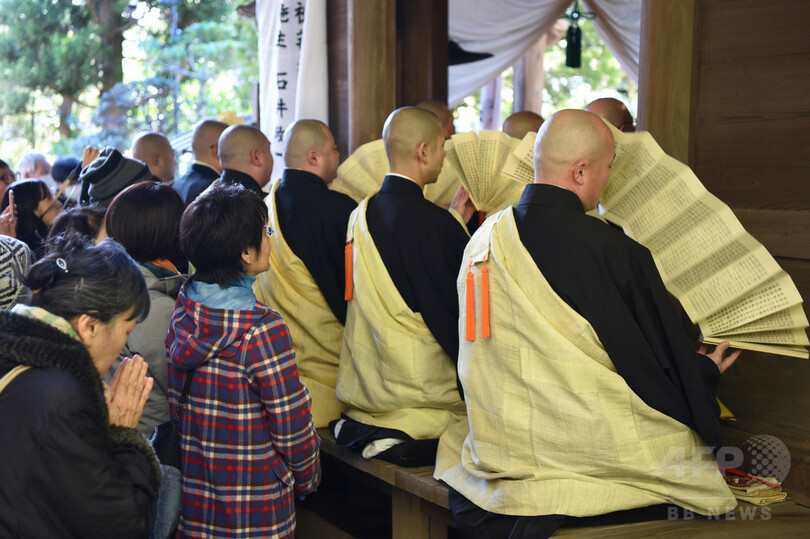 【1月25日 AFPBB News】「知恵の仏様」と呼ばれ、勉学にご利益があると言われる文殊(もんじゅ)菩薩を供養する文殊祭が25日、神奈川県鎌倉市の古刹(こさつ)、常楽寺(Jorakuji-temple)で営まれた。読経が始まると、文殊堂を囲むように集まった参拝者たちが、一心に手を合わせた。