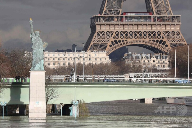 【1月27日 AFP】フランスの首都パリで27日、増水したセーヌ(Seine)川の水位の上昇が続き、厳戒態勢が敷かれた。気象当局は、特にさらに雨が降った場合など、セーヌ川は向こう一週間にわたって高い水位を維持する可能性があると警告している。