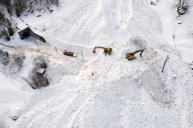 駅では救急隊員が線路の除雪をしようとする傍らで、他の隊員たちが雪崩に遭った地域へ続いている道路を封鎖していた。