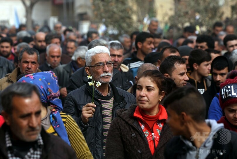 シリア・アフリンで大規模な抗議デモ、トルコの軍事作戦で
