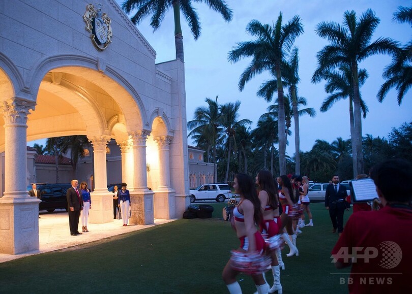 【2月5日 AFP】ドナルド・トランプ(Donald Trump)米大統領とメラニア(Melania Trump)夫人は4日、第52回スーパーボウル(Super Bowl LII)の開催を前に、トランプ氏が所有するフロリダ州ウエストパームビーチ(West Palm Beach)にある「トランプ・インターナショナル・ゴルフ・クラブ(Trump International Golf Club)」で、フロリダ・アトランティック大学(Florida Atlantic University)のマーチングバンドやチアリーダーらによるパフォーマンスを観賞した。(c)AFP