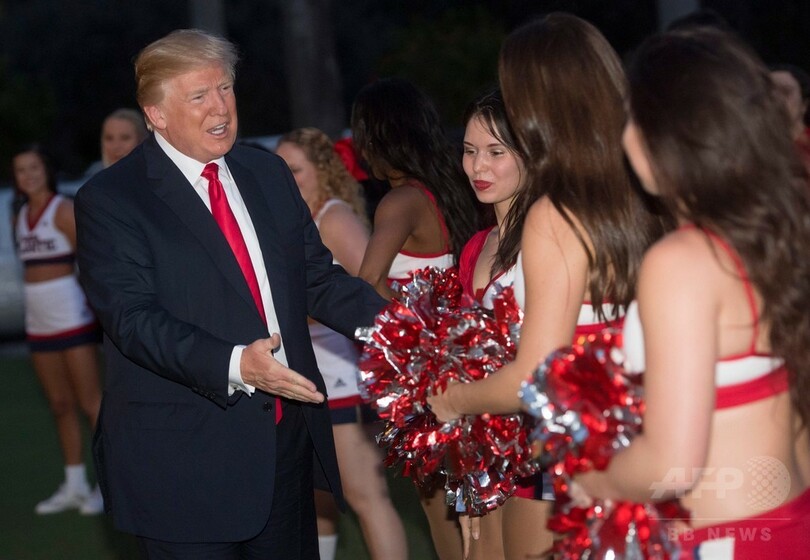 【2月5日 AFP】ドナルド・トランプ(Donald Trump)米大統領とメラニア(Melania Trump)夫人は4日、第52回スーパーボウル(Super Bowl LII)の開催を前に、トランプ氏が所有するフロリダ州ウエストパームビーチ(West Palm Beach)にある「トランプ・インターナショナル・ゴルフ・クラブ(Trump International Golf Club)」で、フロリダ・アトランティック大学(Florida Atlantic University)のマーチングバンドやチアリーダーらによるパフォーマンスを観賞した。(c)AFP