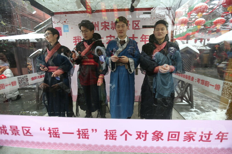 【2月6日 CNS】中国・浙江省(Zhejiang)杭州市(Hangzhou)にある、中国の宋代文化テーマパーク「宋城景区」で、「宋代に戻って年越し」というテーマのお見合いイベントが行われ、帰省前に何とか恋人だけでも見つけたいという若者が参加した。