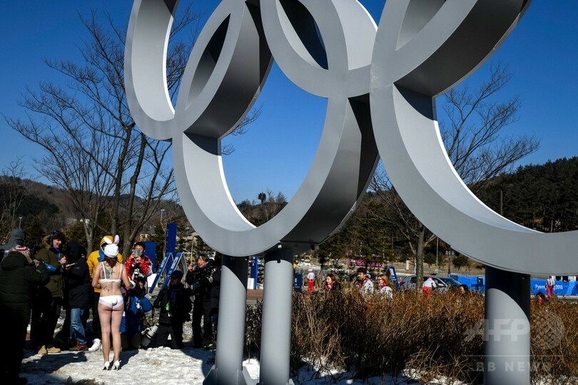 氷点下16度の平昌、下着姿の「バニーガール」が毛皮着用に抗議