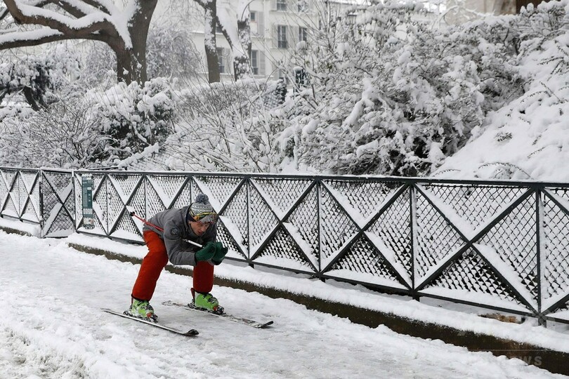 【2月8日 AFP】大雪に見舞われたフランスの首都パリでは7日、何千人もの旅行者や通勤者が交通機関の混乱に巻き込まれた。一方、市内のモンマルトル(Montmartre)地区では雪が積もった坂道をスキーで軽快に滑り降りる人の姿もみられた。