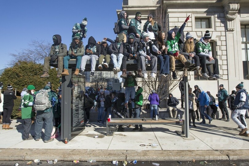【2月9日 AFP】第52回スーパーボウル(Super Bowl LII)を制したフィラデルフィア・イーグルス(Philadelphia Eagles)が8日、地元で優勝パレードを行い、駆けつけた数十万人のファンと喜びを分かち合った。
