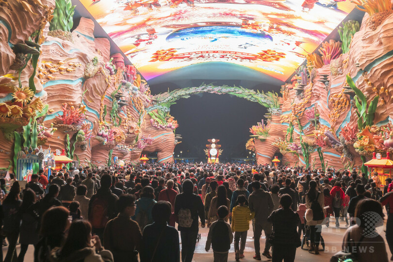 【2月11日 CNS】中国・広東省(Guangdong)珠海市(Zhuhai)にある水族館「長隆海洋王国(Chimelong Ocean Kingdom)」で、エントランスにあるアーチ状の天井に巨大なLEDビジョンが導入され、色鮮やかな映像が建物を彩った。
