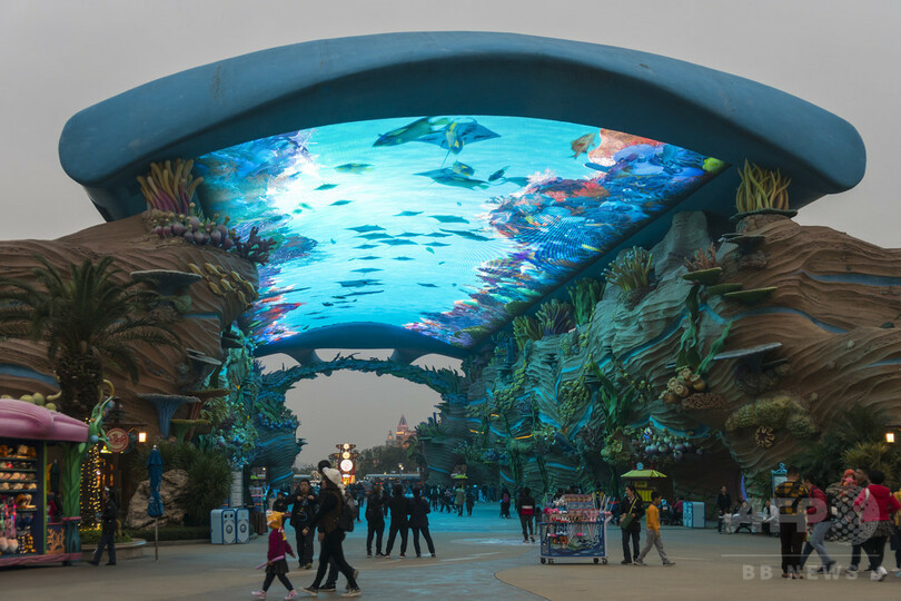 極彩色で客を出迎え 珠海・長隆海洋王国のLEDスクリーン