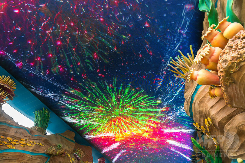 極彩色で客を出迎え 珠海・長隆海洋王国のLEDスクリーン