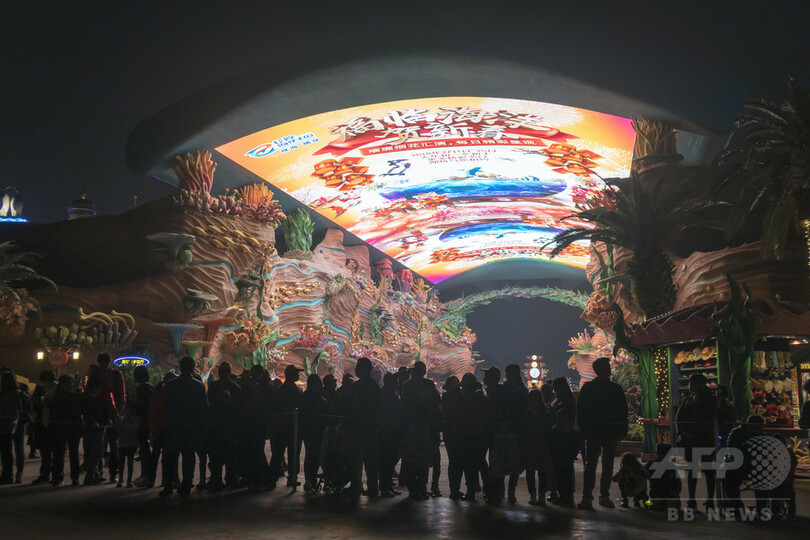 極彩色で客を出迎え 珠海・長隆海洋王国のLEDスクリーン