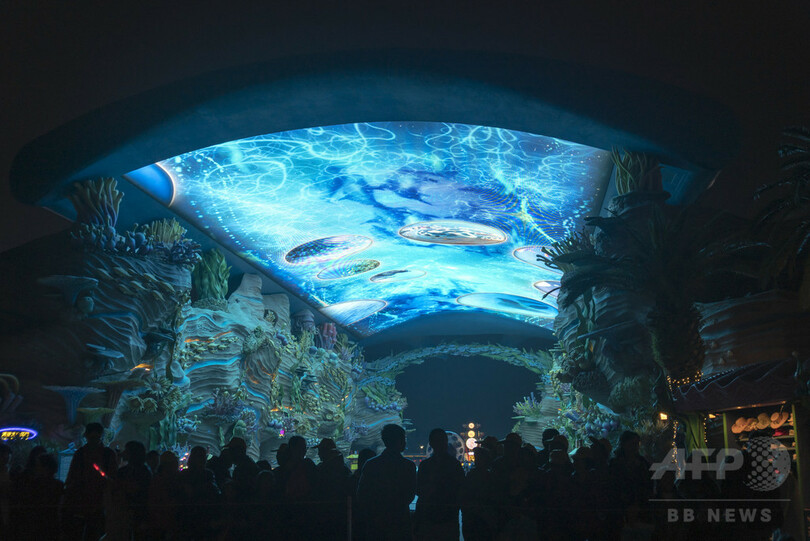 極彩色で客を出迎え 珠海・長隆海洋王国のLEDスクリーン