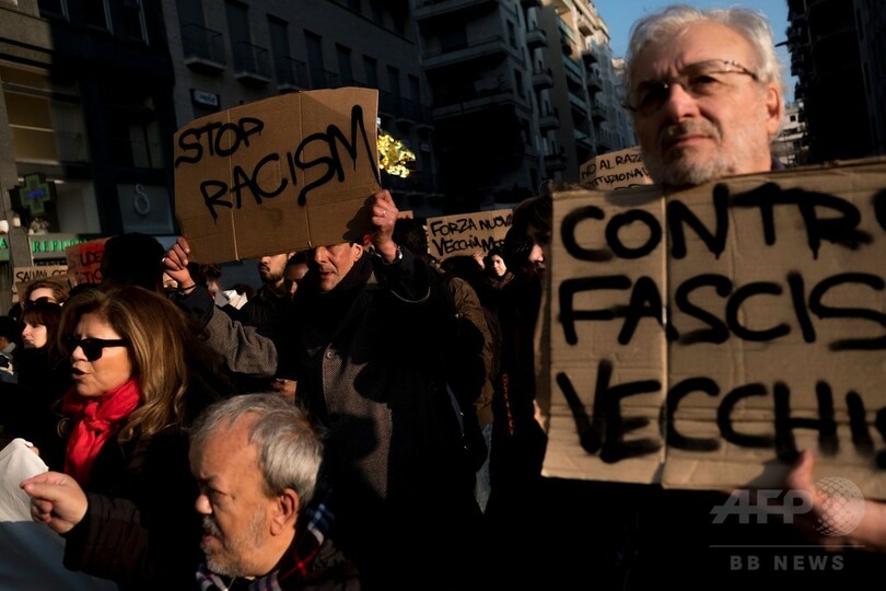 【2月11日 AFP】イタリアで10日、反ファシスト団体や活動家らが主導する抗議デモが中部マチェラータ(Macerata)など複数の都市で行われ、数万人が参加した。