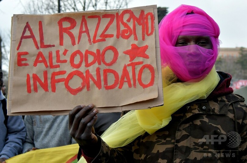 【2月11日 AFP】イタリアで10日、反ファシスト団体や活動家らが主導する抗議デモが中部マチェラータ(Macerata)など複数の都市で行われ、数万人が参加した。