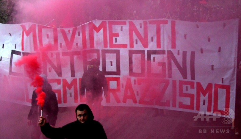 【2月11日 AFP】イタリアで10日、反ファシスト団体や活動家らが主導する抗議デモが中部マチェラータ(Macerata)など複数の都市で行われ、数万人が参加した。