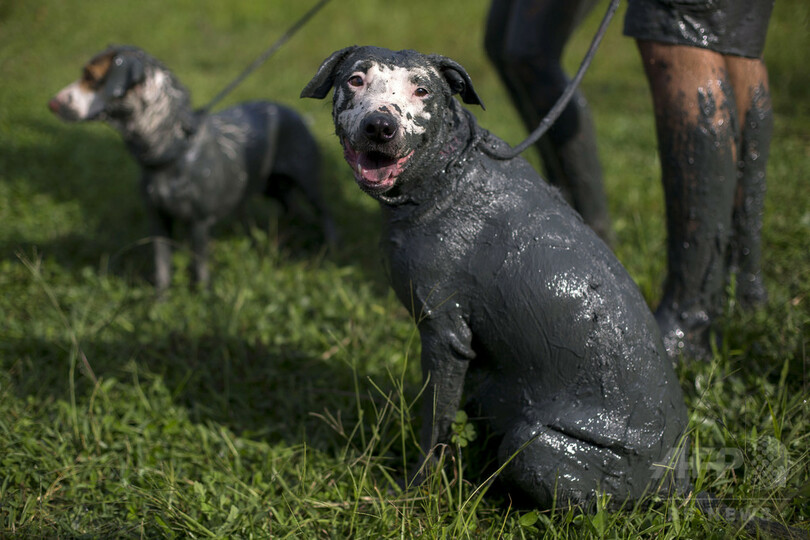 ワンちゃんも大はしゃぎ、泥まみれでカーニバル ブラジル