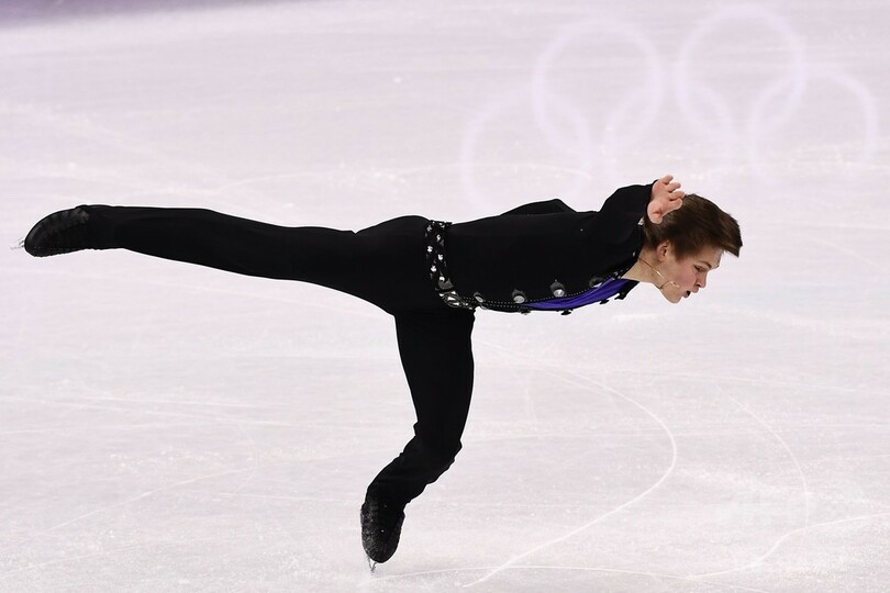 【2月12日 AFPBB News】平昌冬季五輪は12日、フィギュアスケート団体戦の男子シングル・フリースケーティング(FS)が行われ、OAR(ロシアからの五輪選手)のミハイル・コリヤダ(Mikhail Kolyada)は173.57点を記録し、2位となった。(c)AFPBB News