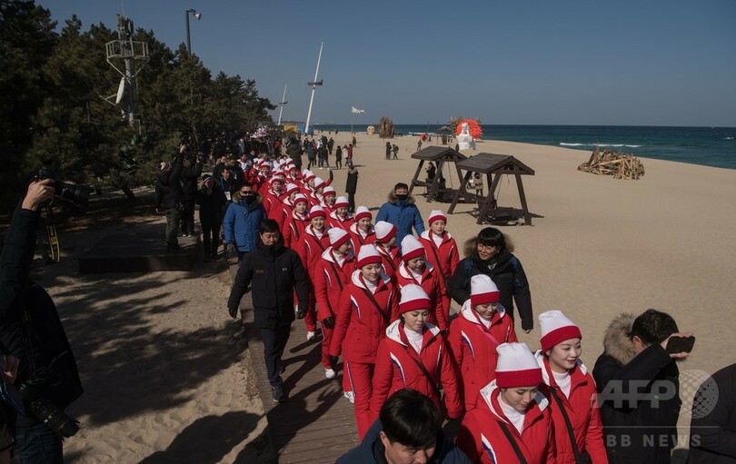 【2月14日 AFP】平昌冬季五輪に合わせて韓国に派遣された北朝鮮の女性応援団は13日、現地の海水浴場を訪れた。しかし多くのメディアが殺到し、応援団は短時間でビーチ訪問を切り上げた。