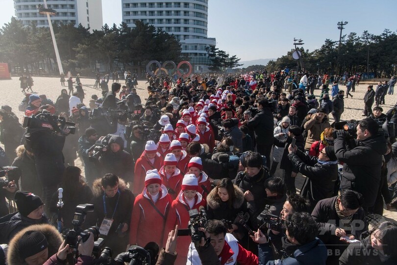【2月14日 AFP】平昌冬季五輪に合わせて韓国に派遣された北朝鮮の女性応援団は13日、現地の海水浴場を訪れた。しかし多くのメディアが殺到し、応援団は短時間でビーチ訪問を切り上げた。