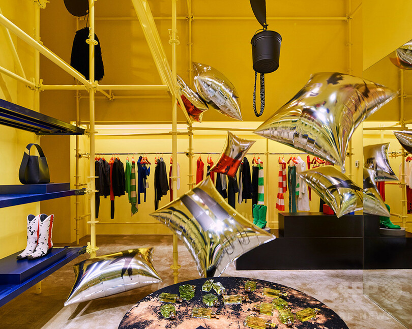 50年以上も前のオリジナル作品と同じ比率で再現される今回のインスタレーションでは、つながれていない数百個のクロムメッキのような「雲」に空気とヘリウムガスを充填する。雲は空中に自由に浮かび、店内を訪れる人々の動きに合わせて漂う。風船には、2018年春のランウェイ・コレクションに登場したウォーホルの「死と惨禍シリーズ」の歪んだ金属の残骸の画像や、ウォーホルと親しかった俳優のデニス・ホッパー(Dennis Hopper)とサンドラ・ブラント(Sandra Bland)のポートレートなどがプリントされている。ゾッとするようなその恐ろしい画像がポップなカンバスにプリントされており、ダイナミックなコントラストを生み出している。