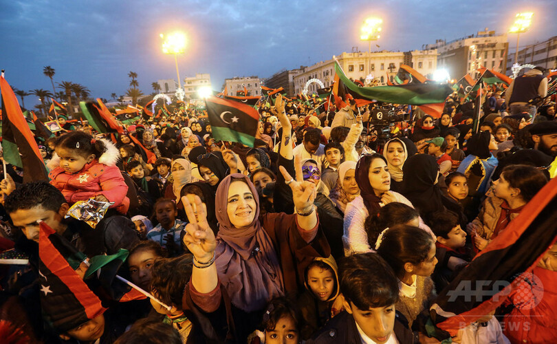 リビア首都、カダフィ独裁崩壊につながった大規模デモから7年を祝う