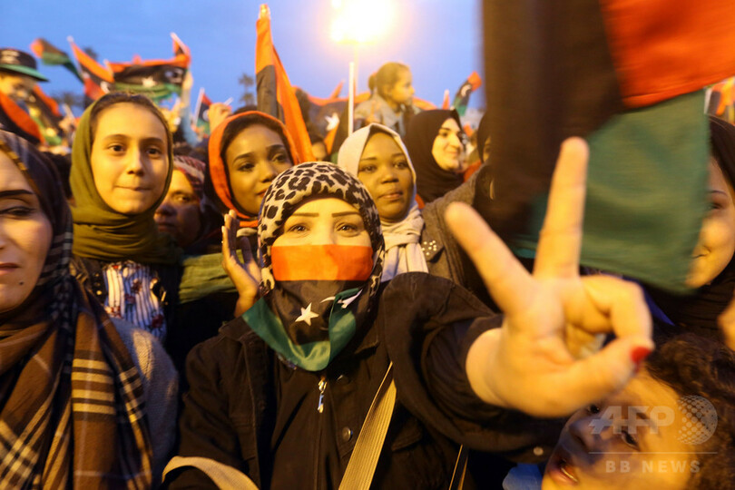 リビア首都、カダフィ独裁崩壊につながった大規模デモから7年を祝う