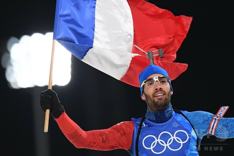 フランスのマルタン・フールカデ(Martin Fourcade)は、冬季五輪の選手として同国史上最多となる5つ目の金メダルを獲得した。フールカデは、ソチ冬季五輪で二つの金メダルを獲得しており、今大会での金は三つ目となった。(c)AFP