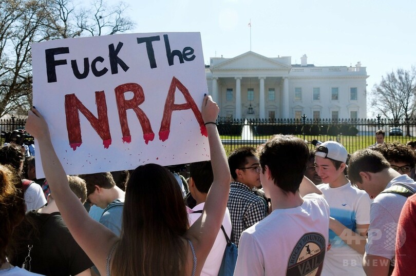 フロリダ州を含む全米各地の高校では、被害者らとの連帯を示すために生徒らが授業を放棄し集会を開き、この悲劇を転機に銃規制論議の行き詰まりを解消することを誓った。首都ワシントンでは、地元の高校生数百人がホワイトハウス(White House)前に集まり、銃ロビー団体「全米ライフル協会(NRA)」を批判する声を上げ、ドナルド・トランプ(Donald Trump)大統領に行動を起こすよう要求した。(c)AFP/Gilles CLARENNE
