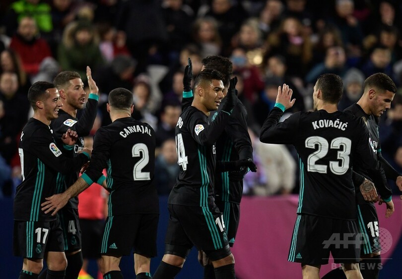 首位のFCバルセロナ(FC Barcelona)とはまだ14ポイントの大差がついているレアルだが、これでバレンシア(Valencia CF)を抜き、2位アトレティコ・マドリード(Atletico de Madrid)と同7差の3位に順位を上げた。(c)AFP