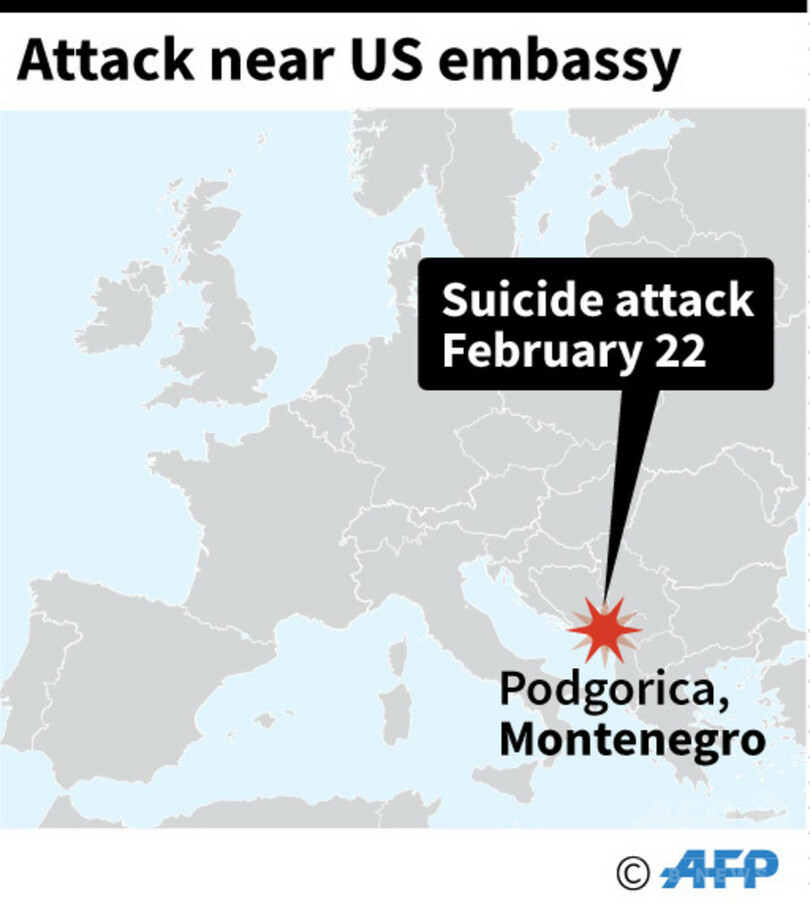 【2月22日 AFP】東欧モンテネグロの首都ポドゴリツァで、身元不明の人物が米大使館に手りゅう弾のようなものを投げ込んだ後、自爆した。モンテネグロ政府が22日、明らかにした。