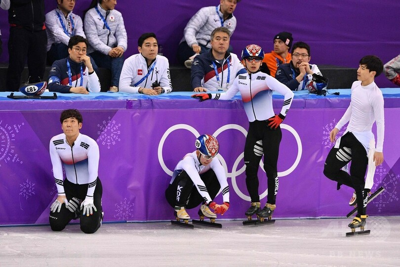 ショートトラック強豪国の韓国は、中盤に選手が転倒して優勝争いから脱落し、4位だった。(c)AFP