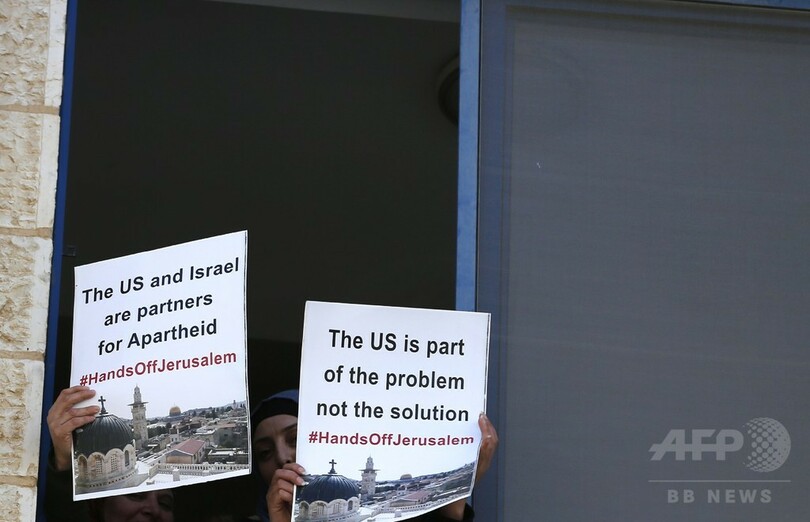 パレスチナは東エルサレムを首都とする国家樹立を目指しており、エルサレムの位置付けについてはイスラエル-パレスチナ間の直接対話によって協議されるべきと国際間で長年合意されていたが、米国はトランプ氏の首都認定によりこれを破棄する形となった。(c)AFP