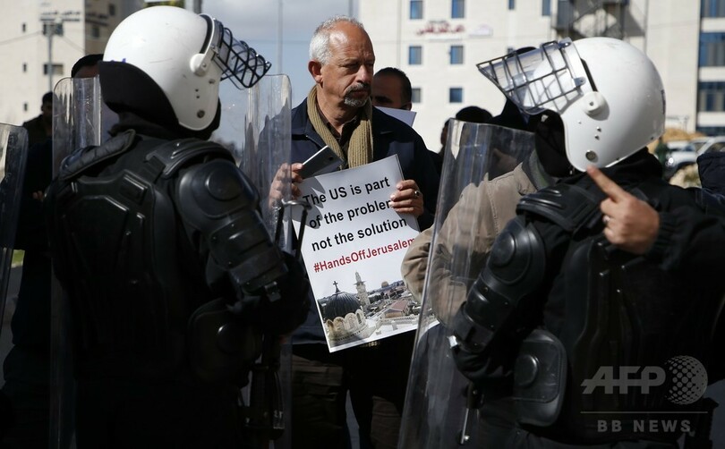 パレスチナは東エルサレムを首都とする国家樹立を目指しており、エルサレムの位置付けについてはイスラエル-パレスチナ間の直接対話によって協議されるべきと国際間で長年合意されていたが、米国はトランプ氏の首都認定によりこれを破棄する形となった。(c)AFP