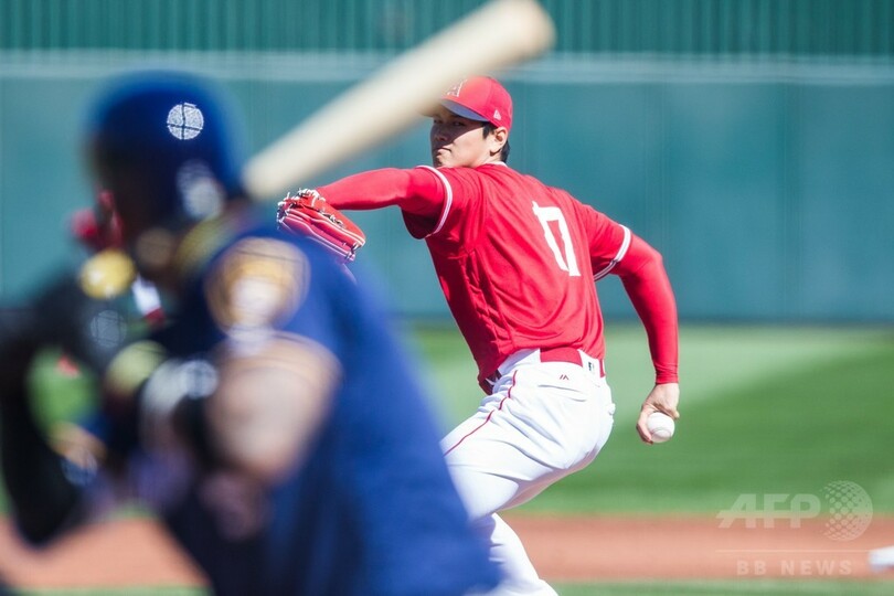【2月25日 AFP】米大リーグ(MLB)、ロサンゼルス・エンゼルス(Los Angeles Angels)の大谷翔平(Shohei Ohtani)が24日、アリゾナ州テンピ(Tempe)で行われたミルウォーキー・ブリュワーズ(Milwaukee Brewers)とのオープン戦で初登板。1回と3分の1を投げて2安打2失点とアップダウンのある内容だった。