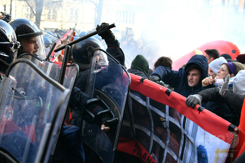 イタリア各地でデモ、散発的な衝突も 総選挙前に緊張高まる
