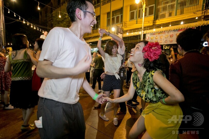 通りに繰り出して踊ろう! 仏塔の町で300人がスイングダンス タイ