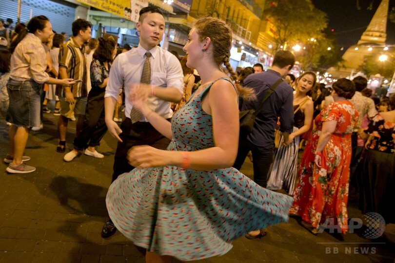 通りに繰り出して踊ろう! 仏塔の町で300人がスイングダンス タイ