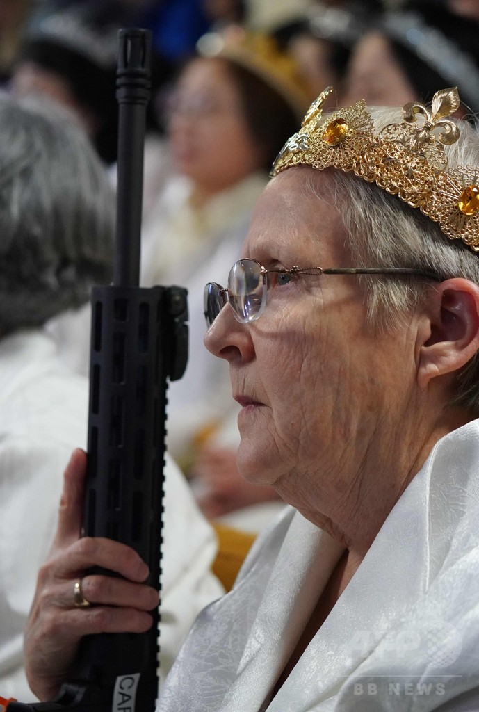銃を手に誓う愛、米の「合同結婚式」で小学校が休校 指導者が武器礼賛